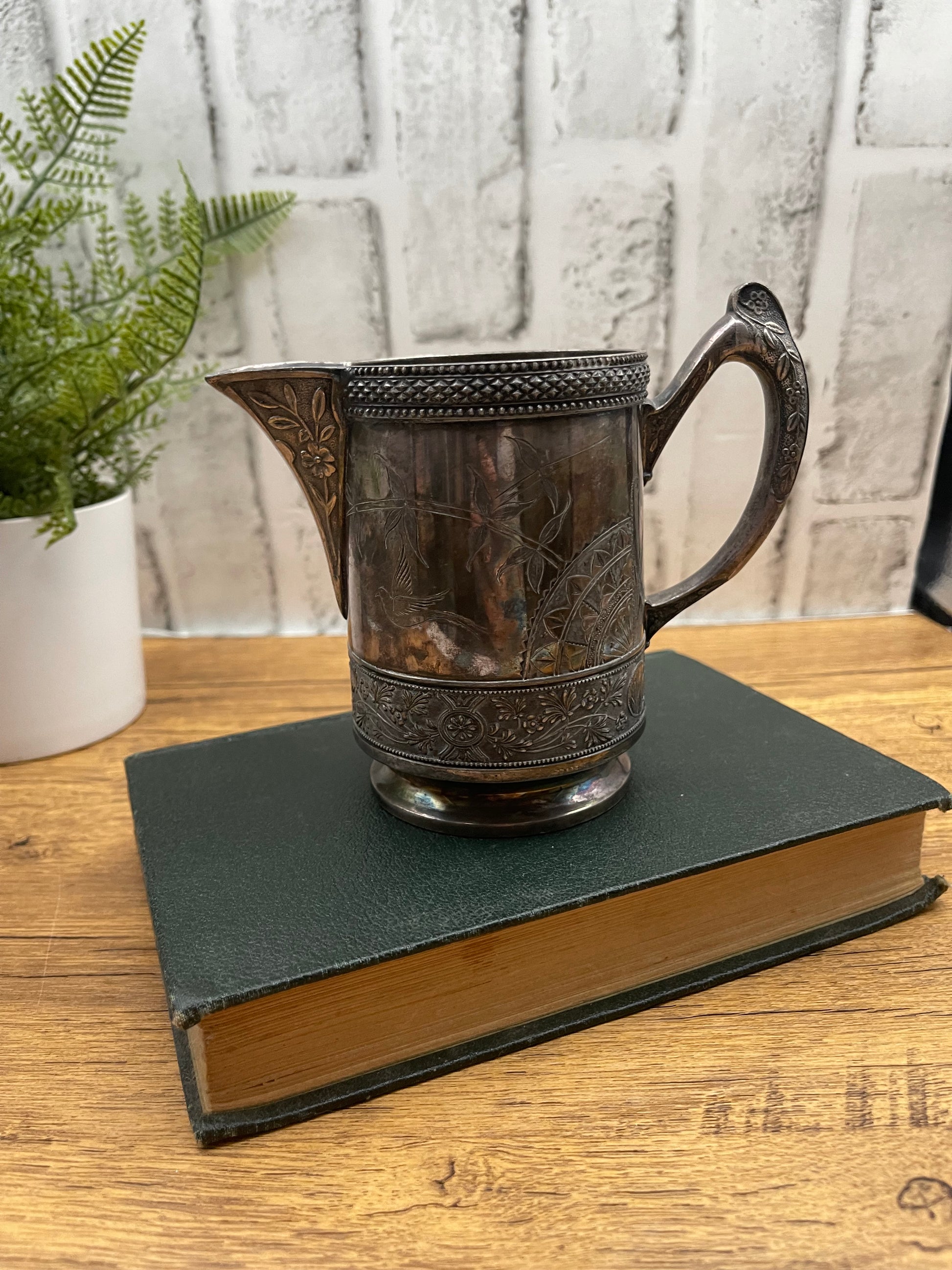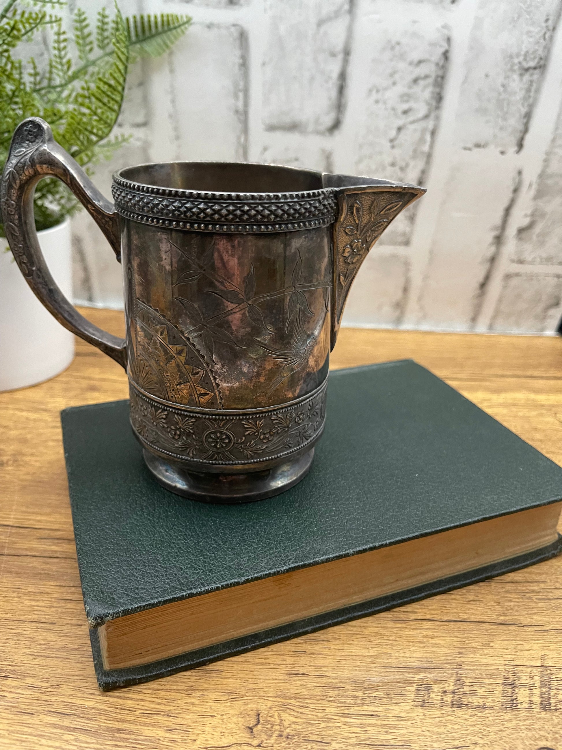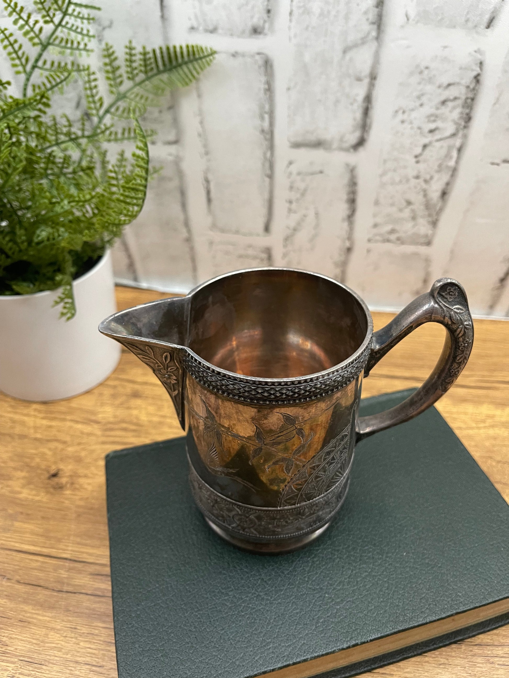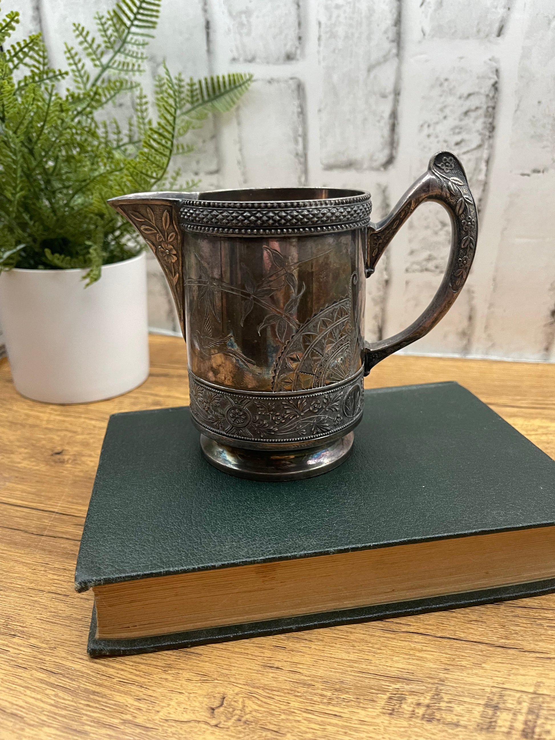 Beautiful WM Roger’s silver plate creamer pitcher. This pitcher has incredible detail. It is very tarnished but can be cleaned with some polish. Marked 2600 on bottom. See pictures for details |